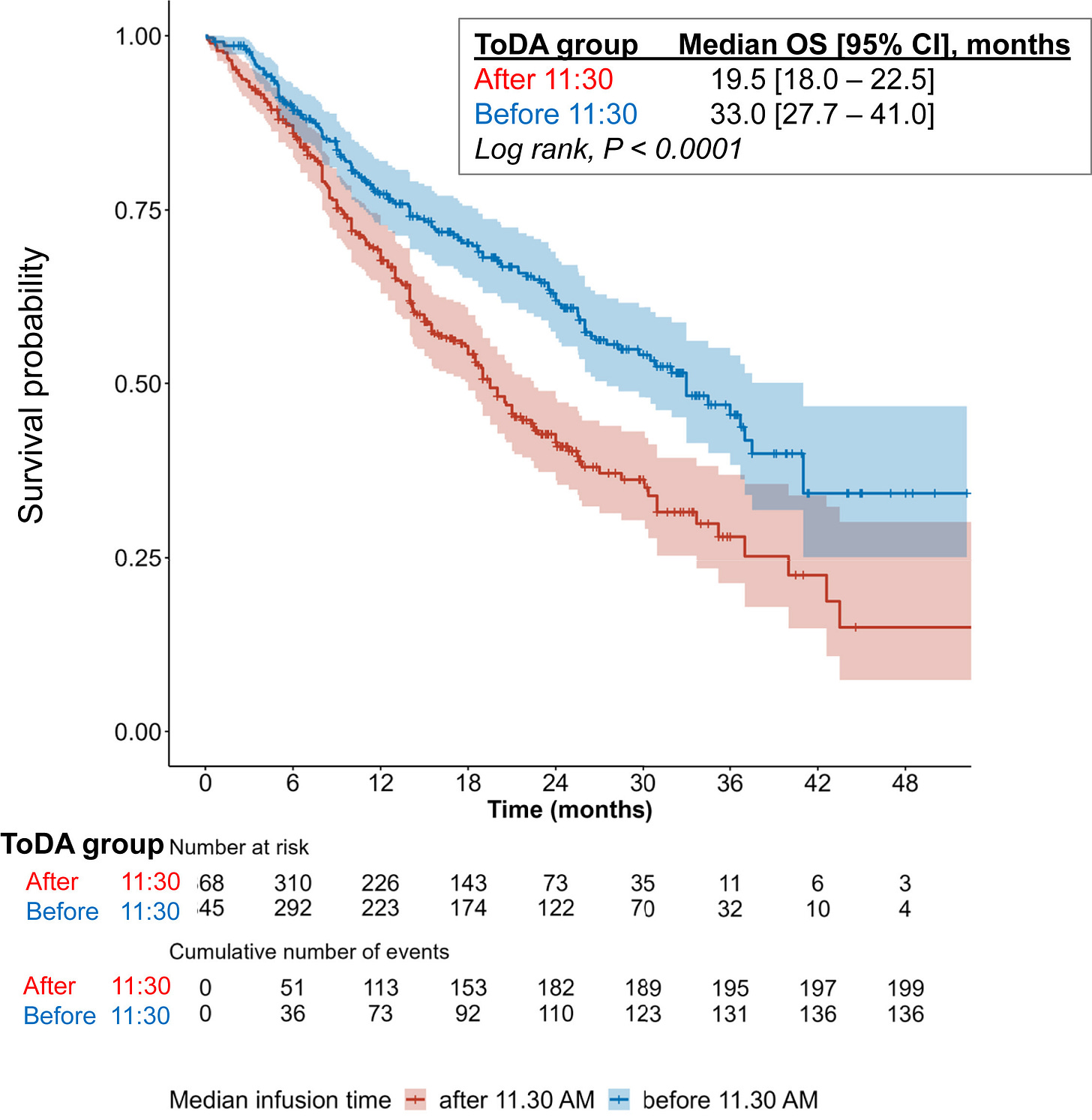 A fascinating example of the importance of time in medicine arrived quite recently. In advanced Non-small-cell lung cancer (NSCLC), a study demonstrated that giving immunotherapy in the morning led to a ~13 percentage point increase in survival probability 4 years in.