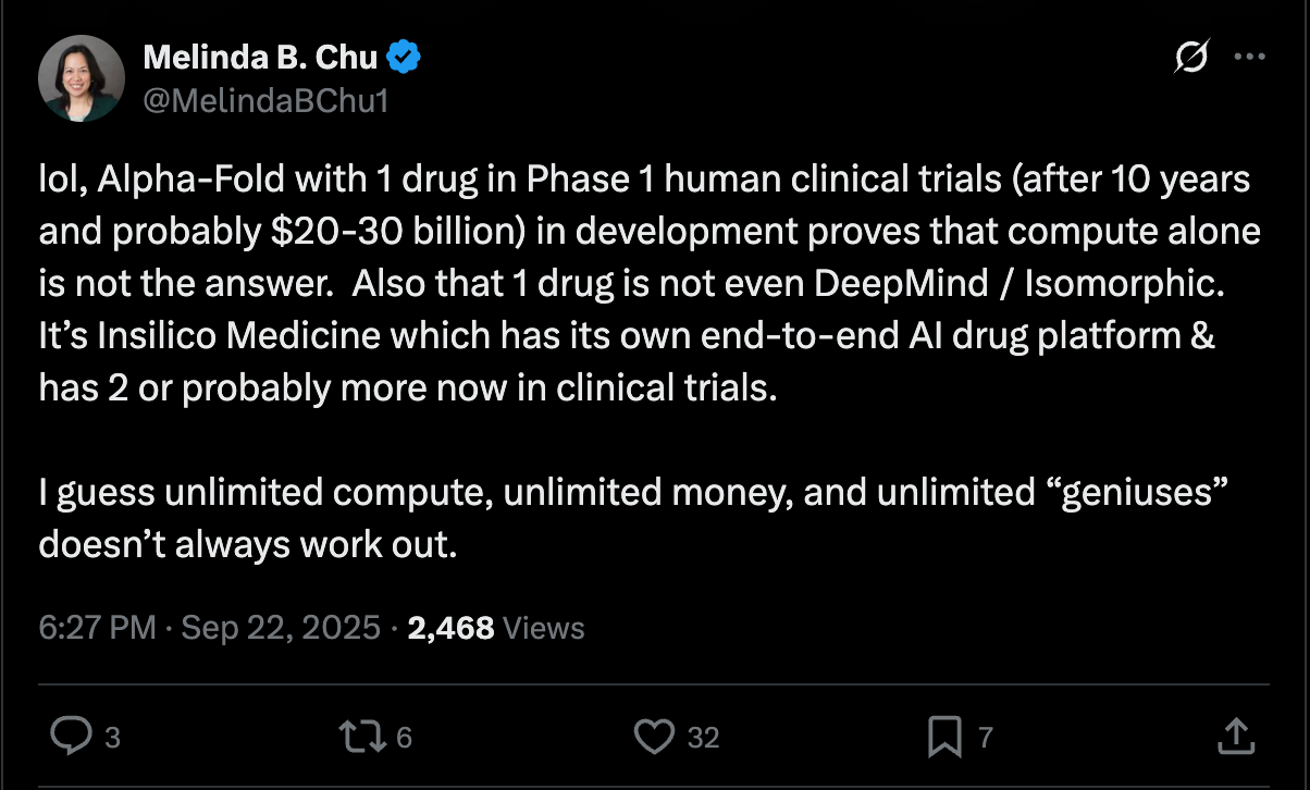 Take Alpha Fold, which has dramatically improved protein structure prediction, or computer vision models, which can detect cancer from MRI images faster than a human. Without doubt, applying AI to biology has sped up and improved what used to take humans much more time to do. Though still looming is the question of whether it translates to interventions in reality that actually work, beyond replacing tasks we used to do, only faster.